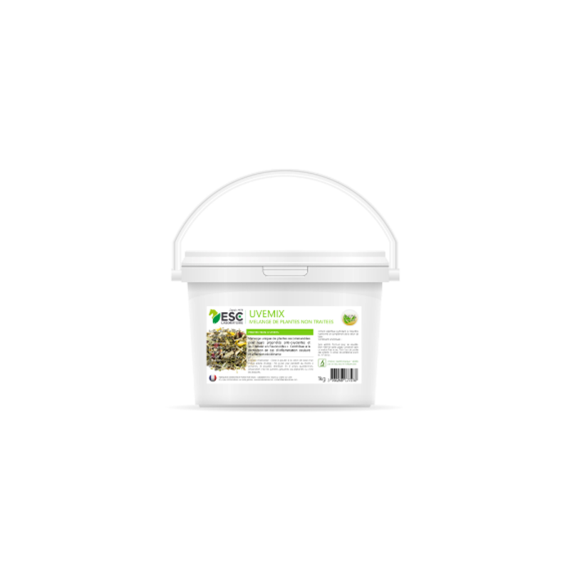 Uvemix est un mélange de plantes sélectionnées pour leurs propriétés agissant sur la sphère oculaire du cheval : SAULE BLANC – BAIE DE MYRTILLE – CASSIS – EUPHRAISIE – BOSWELLIA – FEUILLE DE MYRTILLE – GINKGO – CURCUMA
