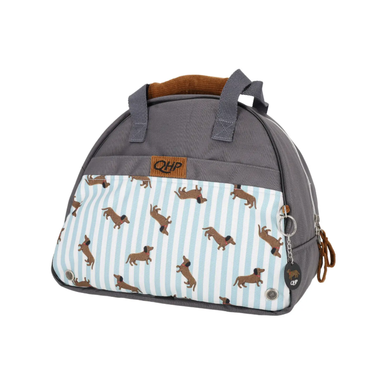 Protégez votre casque des dommages et de la saleté grâce à ce sac à casque haut de gamme orné d’un imprimé Stable Buddy. Grâce à sa poignée sur le dessus, vous pouvez facilement transporter votre casque partout. En plus de votre casque, vous pouvez également ranger d’autres petits objets dans la poche avant du sac. Finitions en velours côtelé.