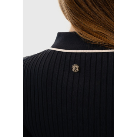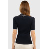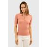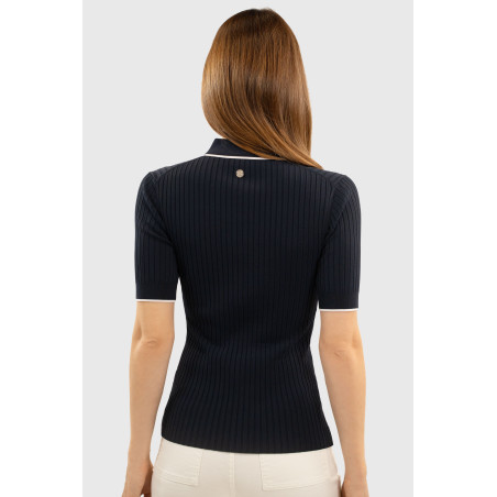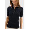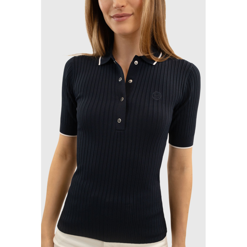 Le polo Bethanie de chez Harcour, manches courtes, coupe près du corps, matière en maille côtelé extensible.