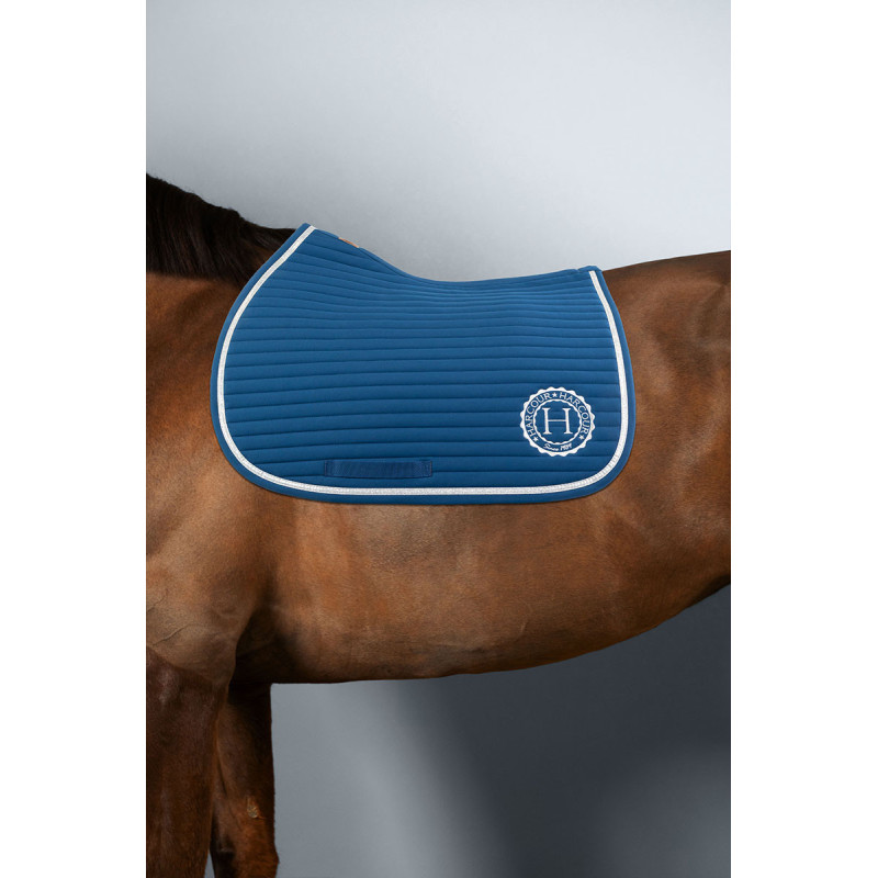 Ce tapis Harcour, de par sa coupe solide et sa forme, reste bien en place sous la selle et est largement dégarotté.