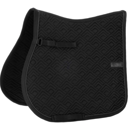 Tapis de selle classique au look moderne et raffiné.La matière douce du dessous garantit une grande respirabilité et une absorption rapide de la transpiration sur le dos du cheval. Le rembourrage en mousse et ouate de polyester haut de gamme se porte garant d’une compensation optimale de la pression.