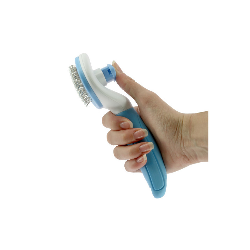Grâce à ses picots rétractables, la brosse se nettoie en un seul geste. Les poils morts sont efficacement évacués sans effort.
