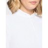 Sa coupe cintrée et ses manches longues mettent en valeur la silhouette tout en offrant une liberté de mouvement optimale. Son petit col délicat, associé à une découpe goutte d’eau à l’arrière, apporte une touche féminine subtile et raffinée.