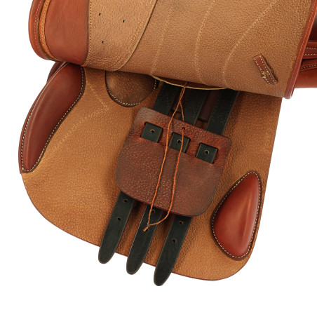 Contre-sanglons en cuir chrome : robustesse maximale.