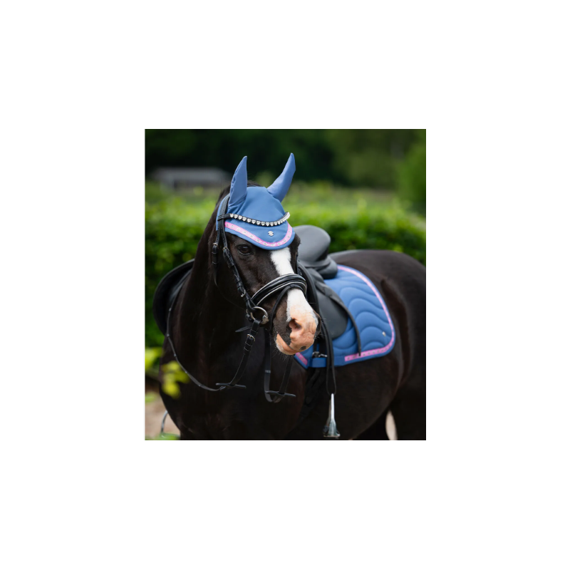 Ce bonnet anti-mouches cheval protège efficacement les oreilles tout en offrant un style unique grâce à sa bordure décorée d’un smiley, signature de la collection Rosalynn. Idéal pour compléter un ensemble coordonné avec tapis et accessoires assortis.